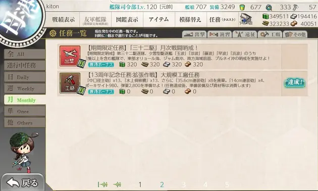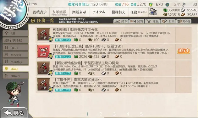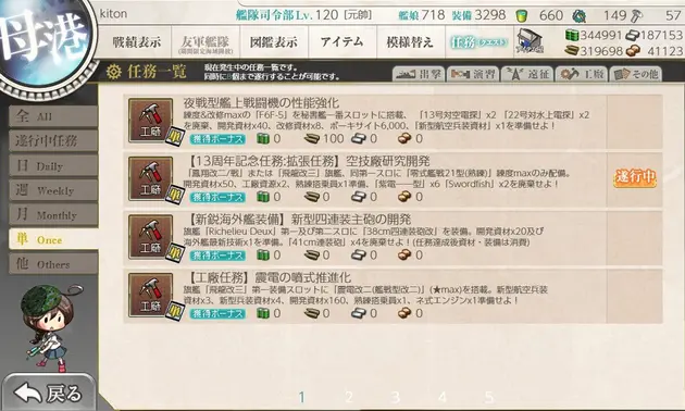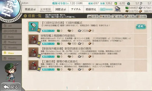 【艦これ】任務『【工廠任務】新装備運用のための工廠整備【弐】』攻略編成【ネ式エンジン入手】
