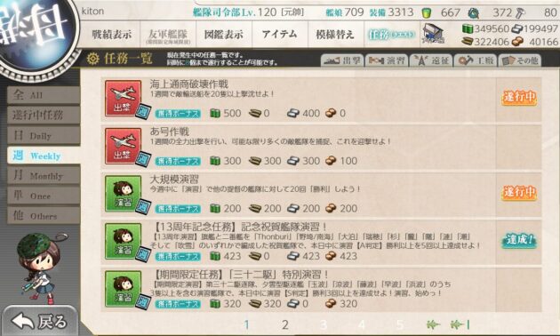 【艦これ】任務『【第一遊撃部隊任務】南西諸島防衛戦に出撃!』攻略編成【15m二重測距儀改+21号電探改二+熟練射撃指揮所入手】