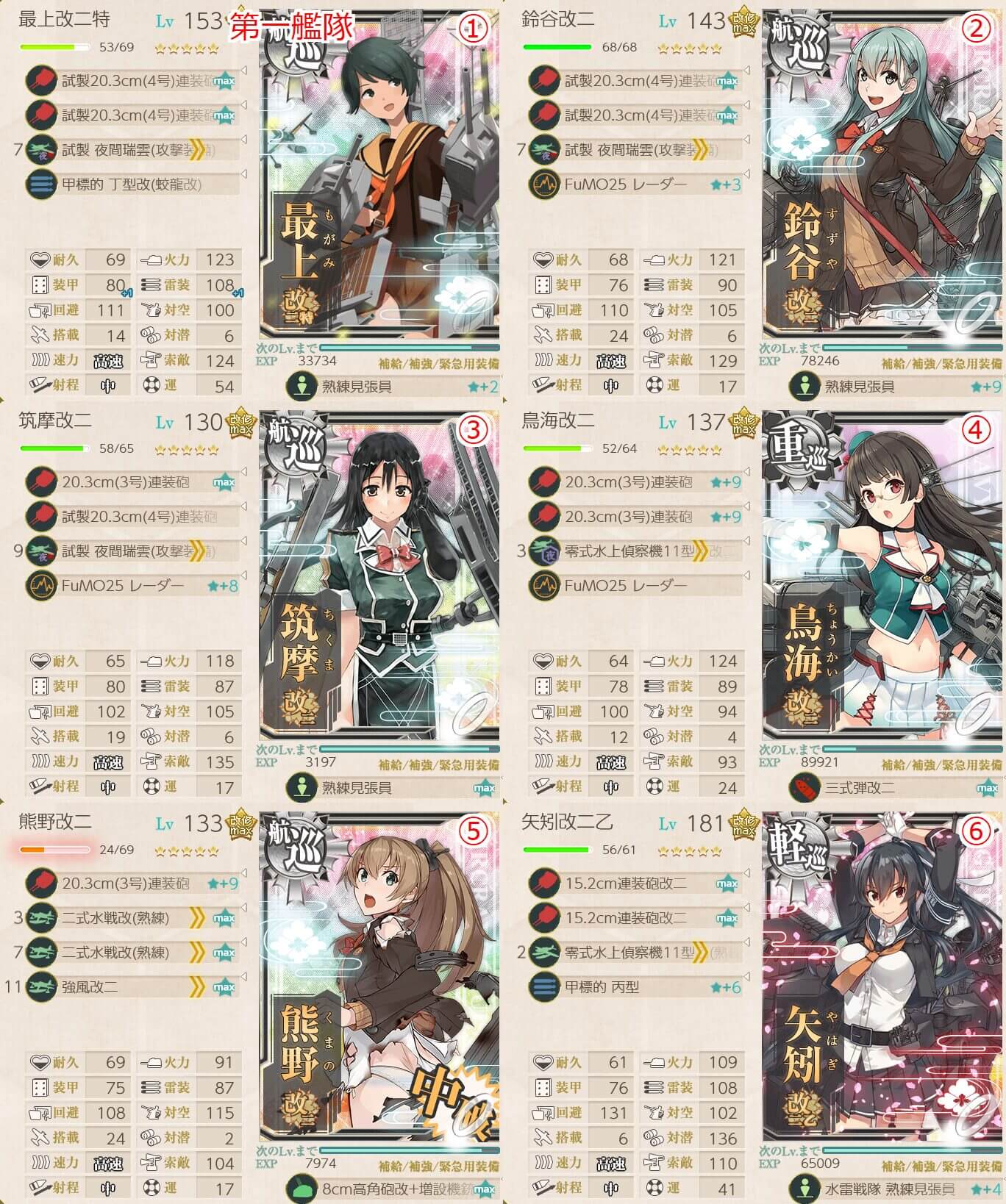 • 鈴谷 x1 , 熊野 x1 , 矢矧 x1 , 重巡級 x3