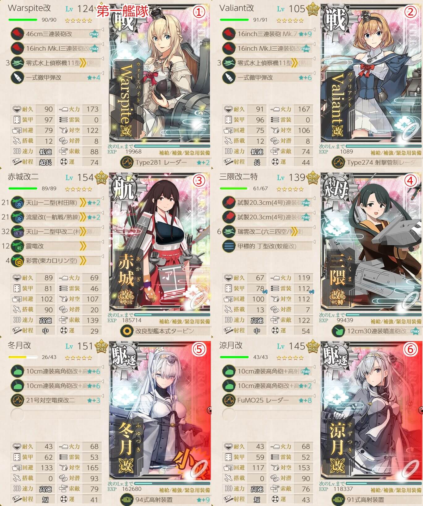 - Warspite [旗艦] , Valiant x1 , 軽空母 x1 , 軽巡洋艦 x1 , 駆逐艦 x2