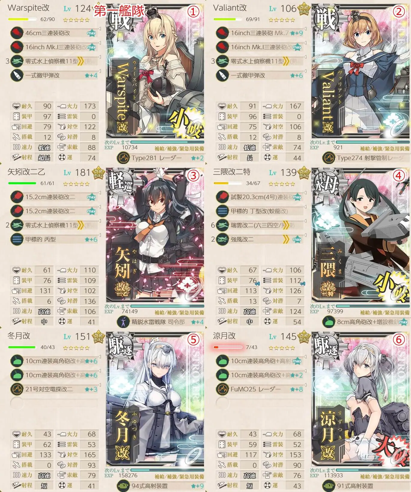 | ・Littorio , Nevada , Warspite , Valiant , Jean Bart 上記の艦娘を旗艦及び同僚艦に |