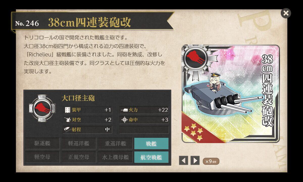 38cm四連装砲改は、38cm四連装砲改 deuxの改修素材。