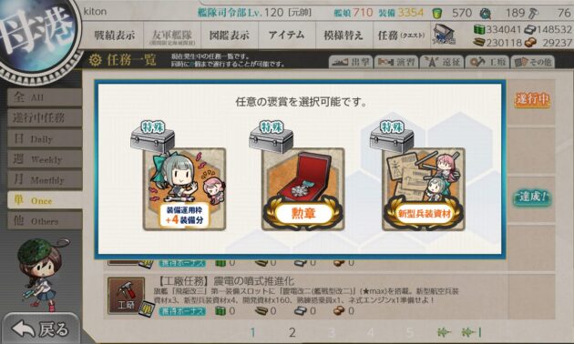 選択報酬は「装備運用枠」と「補強増設」にしました。