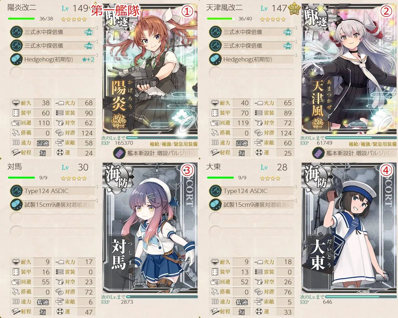 - 陽炎 [旗艦] , 天津風 x1 , 海防艦 x2