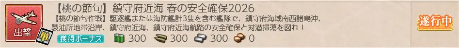 任務『【桃の節句】鎮守府近海 春の安全確保2026』の攻略記事です。