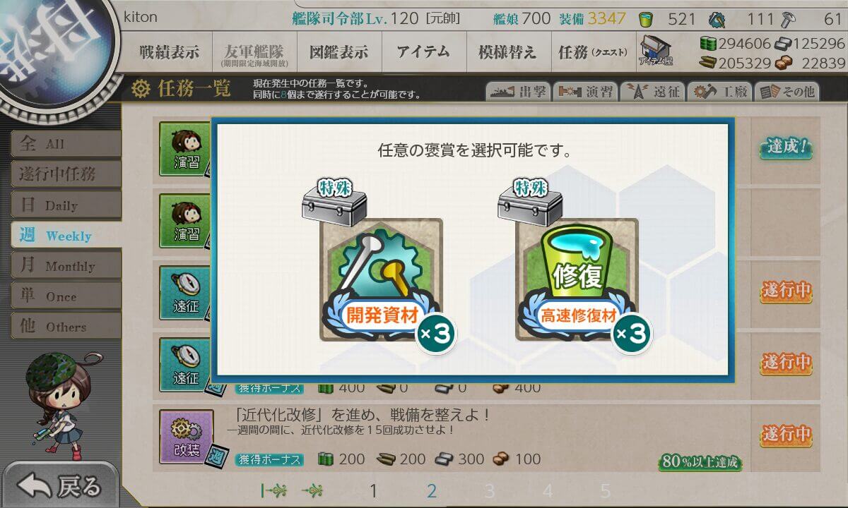 選択報酬は「開発資材」にしました。