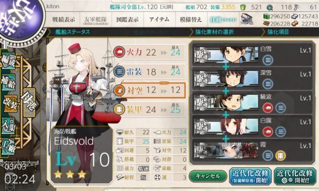 | 2. 近代化改修 | ・任意の海防艦 ・駆逐艦5隻同時使用により成功2回 |