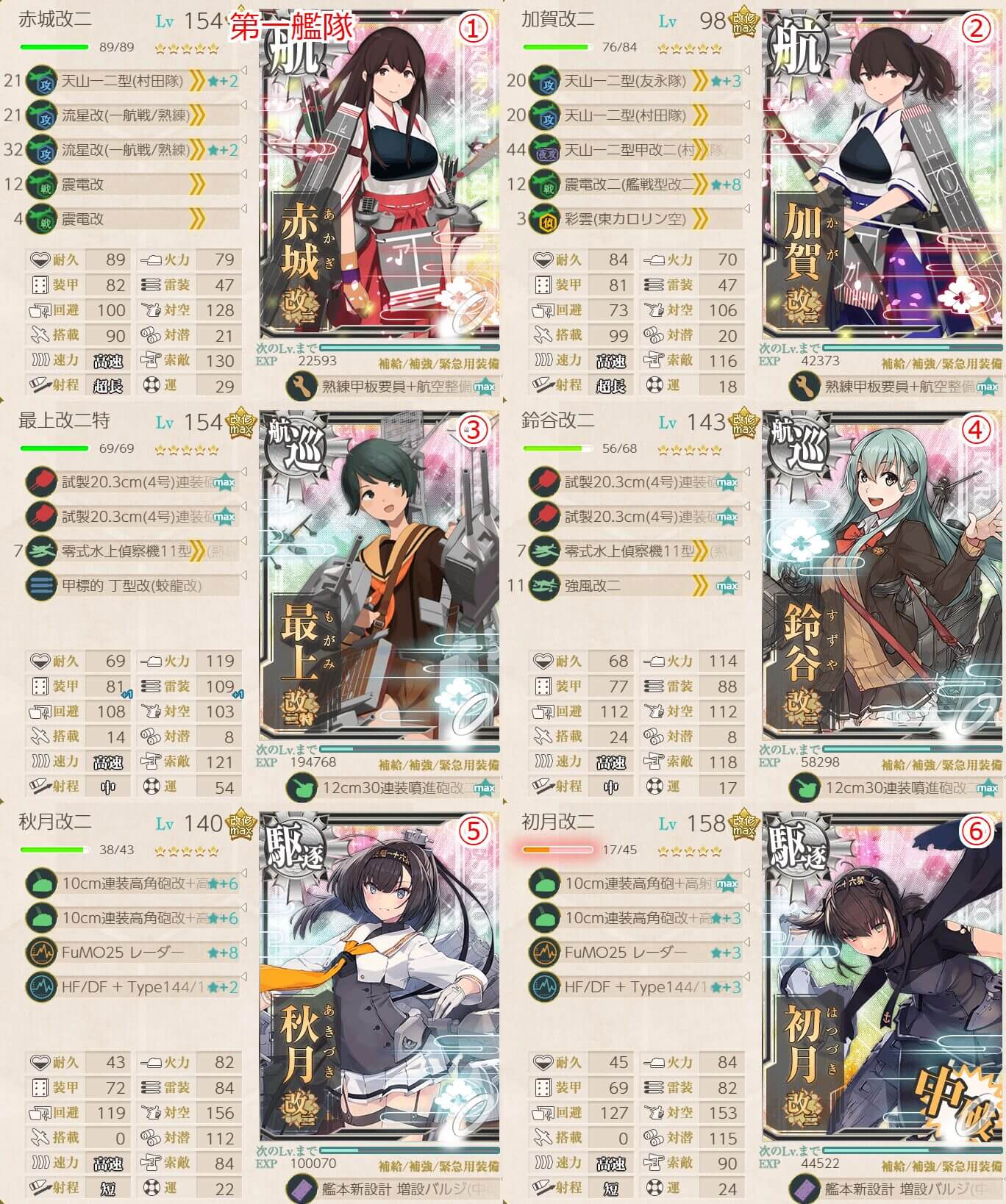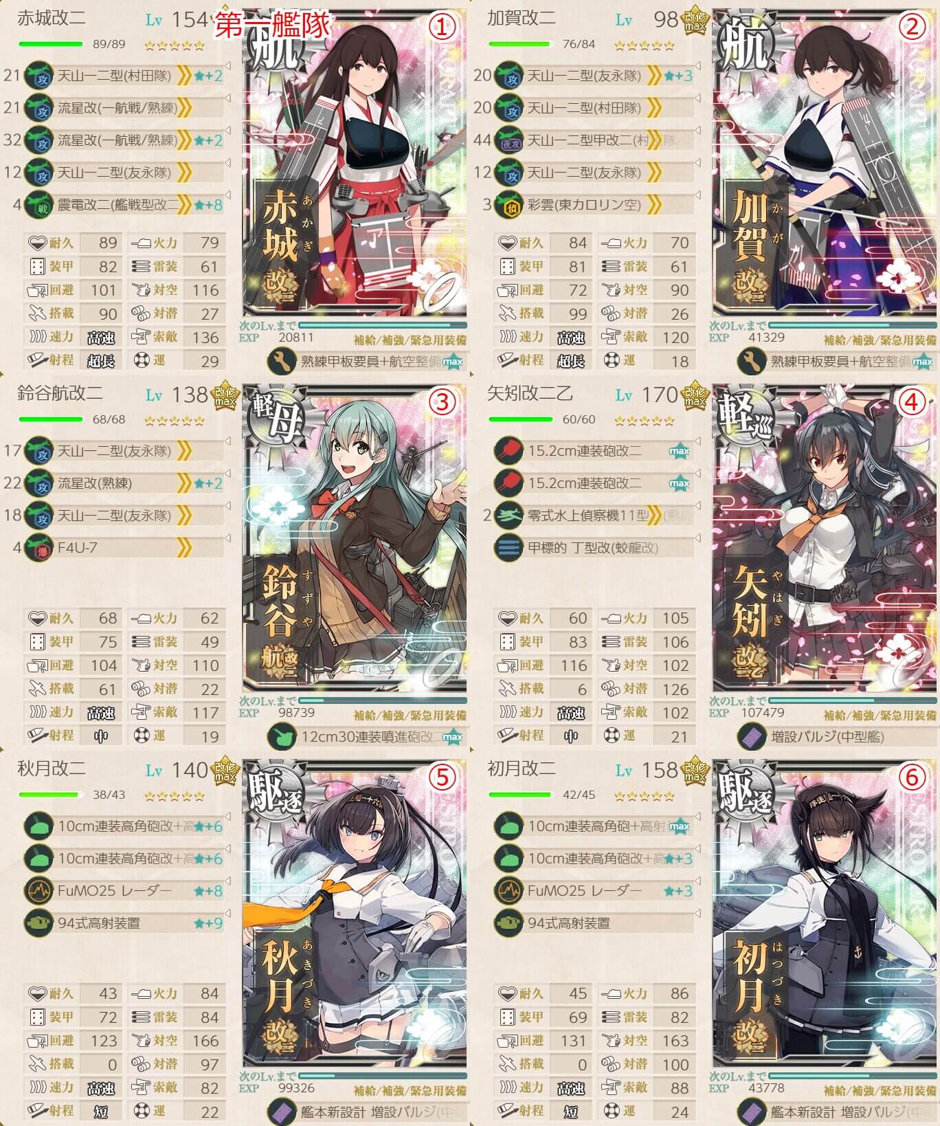 • 赤城 [旗艦] , 加賀 [二番艦] , 重巡級 x2 , 駆逐艦 x2