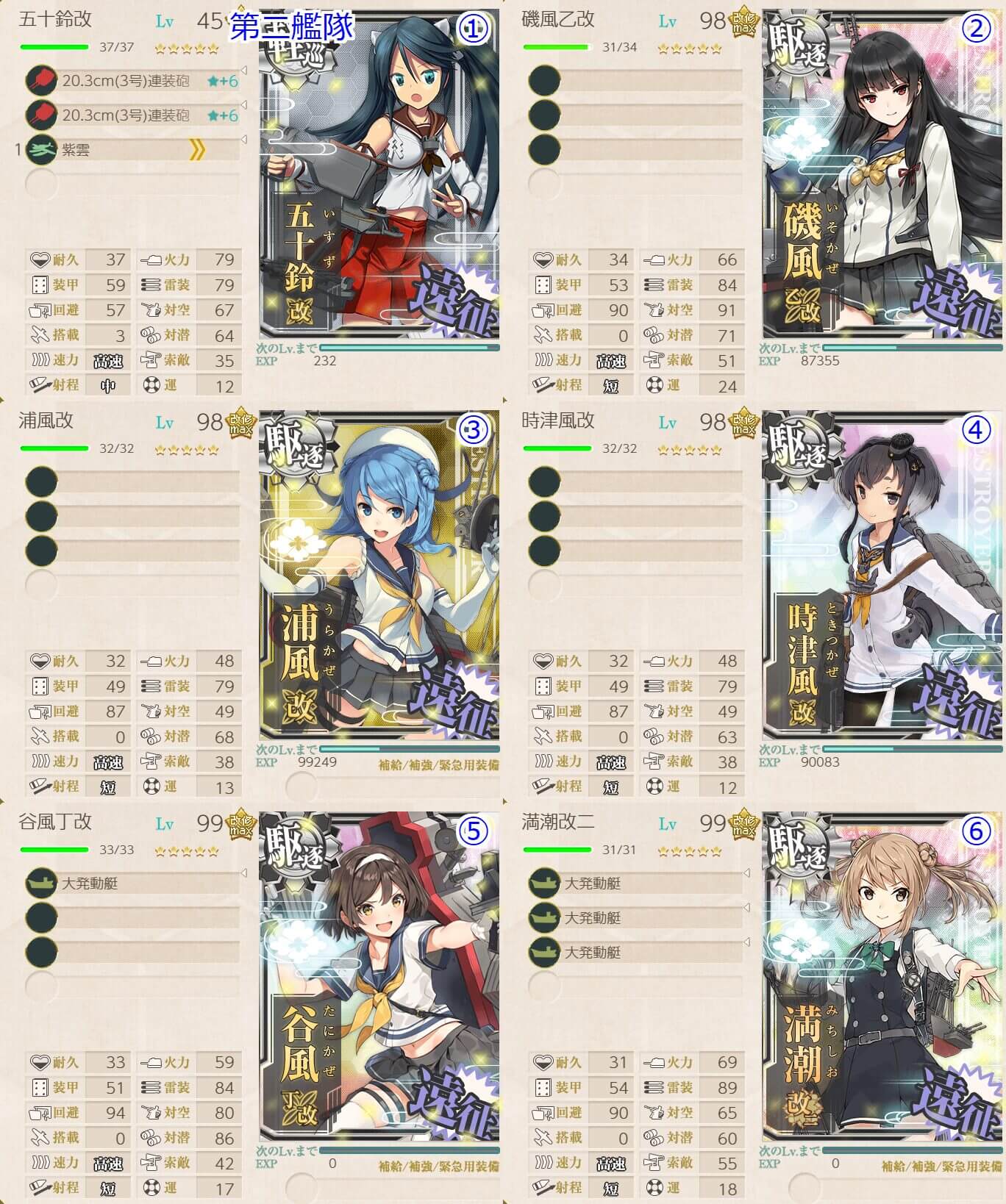 - 軽巡洋艦 x1 , 駆逐艦 x5