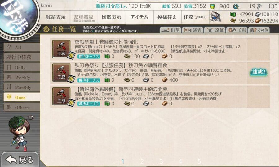 任務『秋刀魚祭り【拡張任務】秋刀魚で戦闘糧食!』