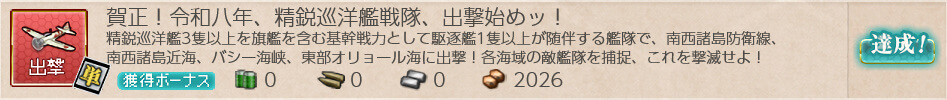 任務『賀正!令和八年、精鋭巡洋艦戦隊、出撃始めッ!』の攻略記事です。
