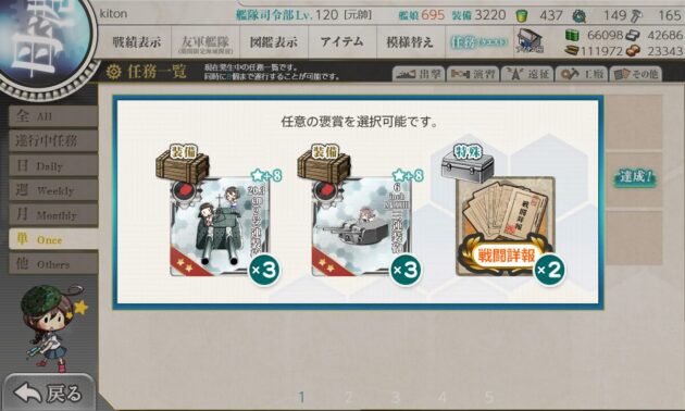 選択報酬は「勲章」と「6inch Mk.XXIII三連装砲」にしました。