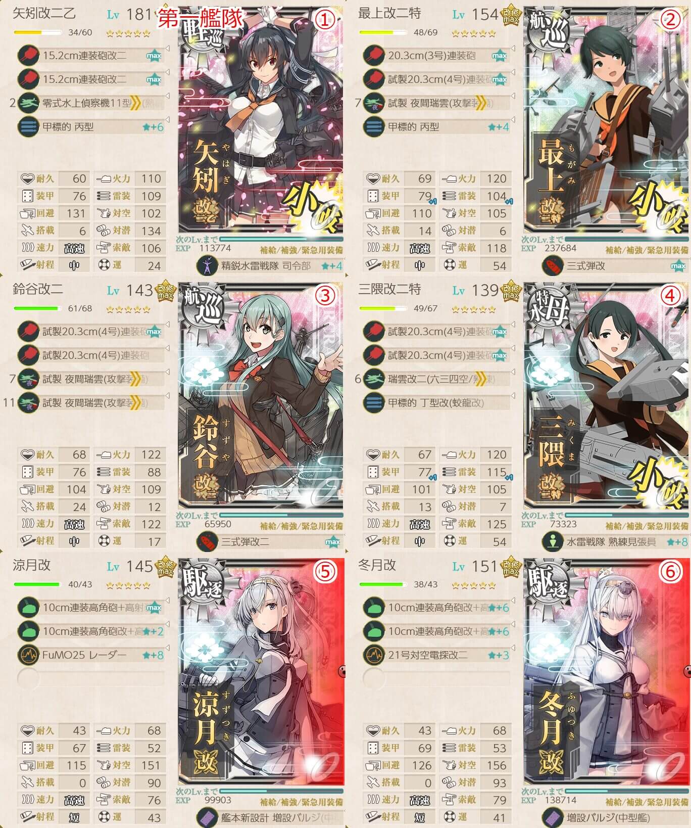 | ・巡洋艦 [旗艦] , 巡洋艦 x2 , 駆逐艦 x1 | ・自由枠 x2 |