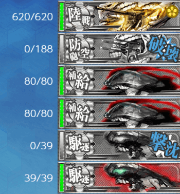 深海上陸小鬼flagship✕3、対空小鬼(駆逐は忘れた)