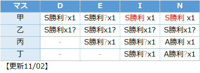 E、IマスでS勝利、NマスはA勝利でギミック解除出来ました。Dマスには到達していません。