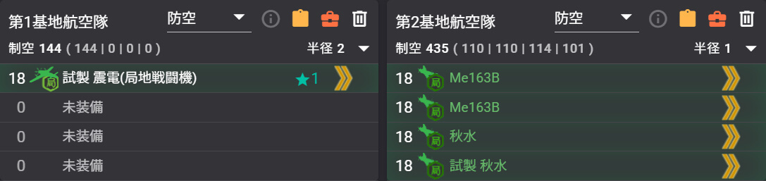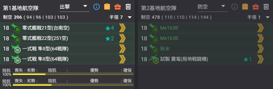 | 制空値目安 | ・525程度 (基地拮抗2回含む) |