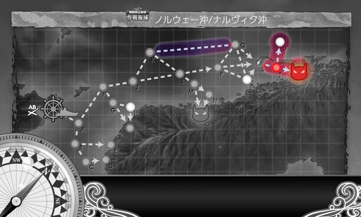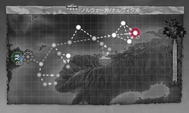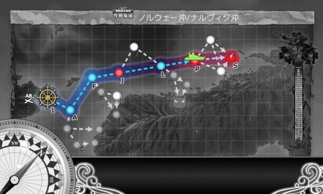 Sマスは最初見逃したけど、優勢2回取れてたのかもしれない…正規空母2隻だったせいか不明だけど、P,Q,R,Sと遠回りしまくったのに…