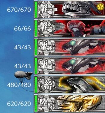 - 護衛空母 x1 , 航空巡洋艦x1 , 駆逐艦 x4