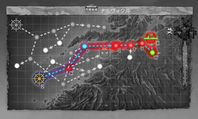 - ② → K → P → Q → T → V → W → X (ボス②)