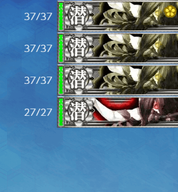 - 戦艦級 x1 , 軽空母 x1 , 重巡級 x1 , 軽巡洋艦 x1 , 駆逐艦 x3