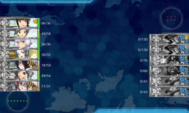 | 制空値目安 | ・艦戦3つ+爆戦2つ | Eマスの優勢ライン |