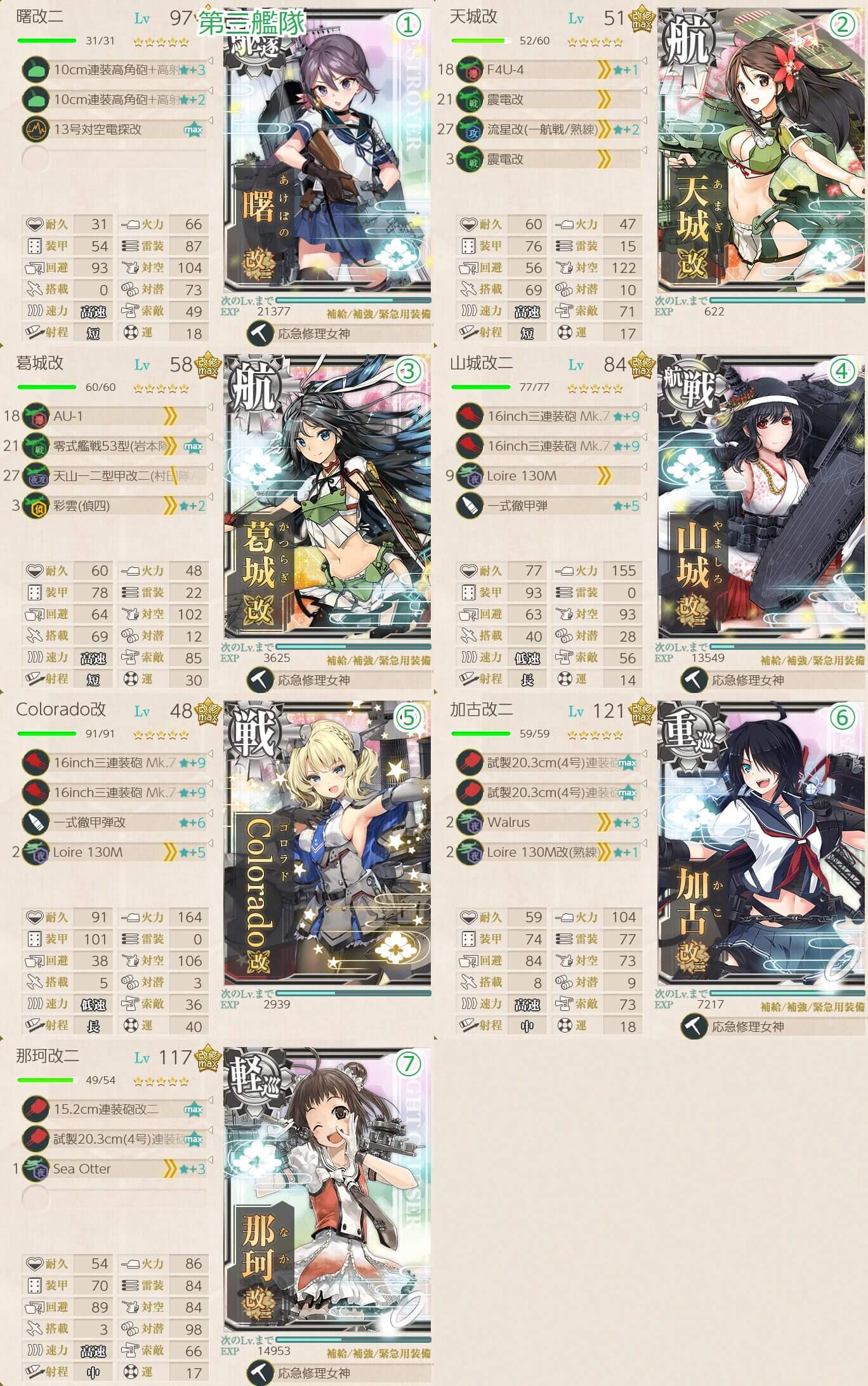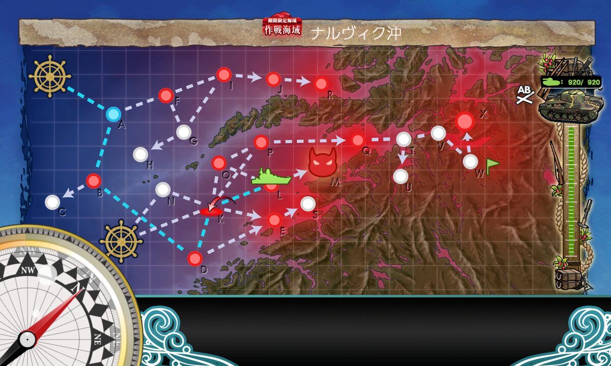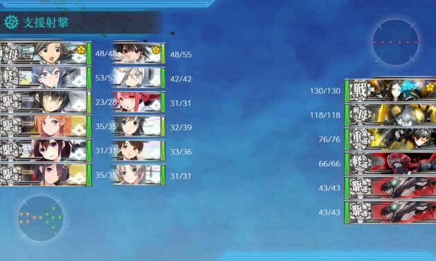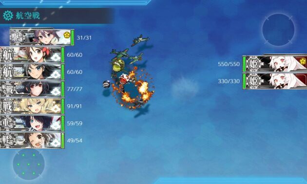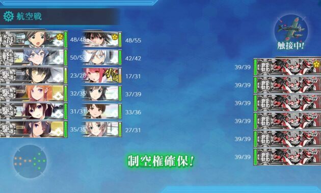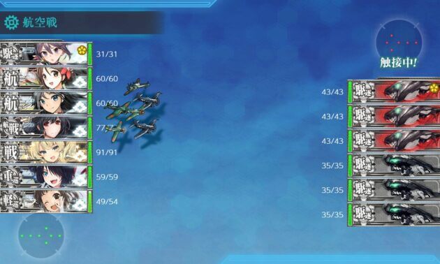 | 制空値目安 | ・水戦3つ | Kマス航空劣勢? Qマス航空均衡? |