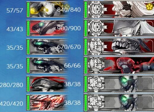 • 重巡級 x2 , 軽巡洋艦 x1 , 駆逐艦 x3