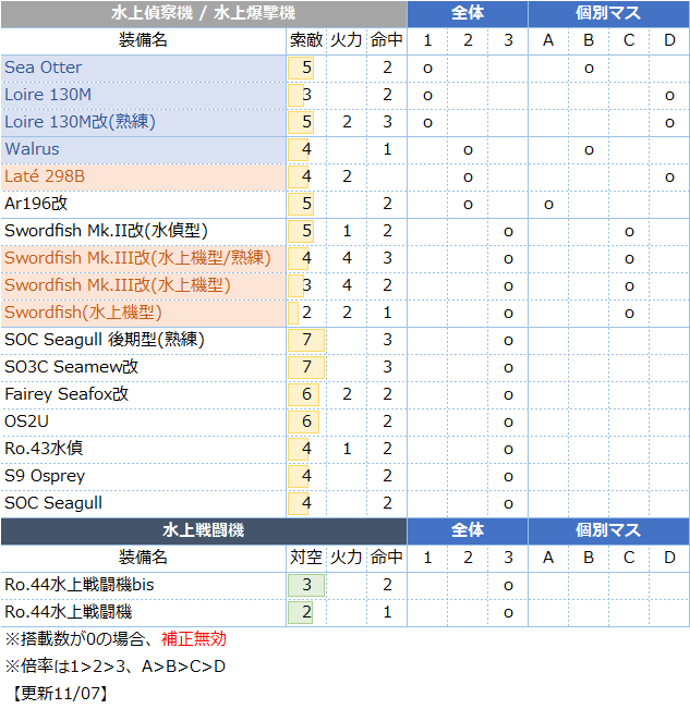 艦載機一覧 -戦艦級・重巡級・軽巡級-(クリックして開く)