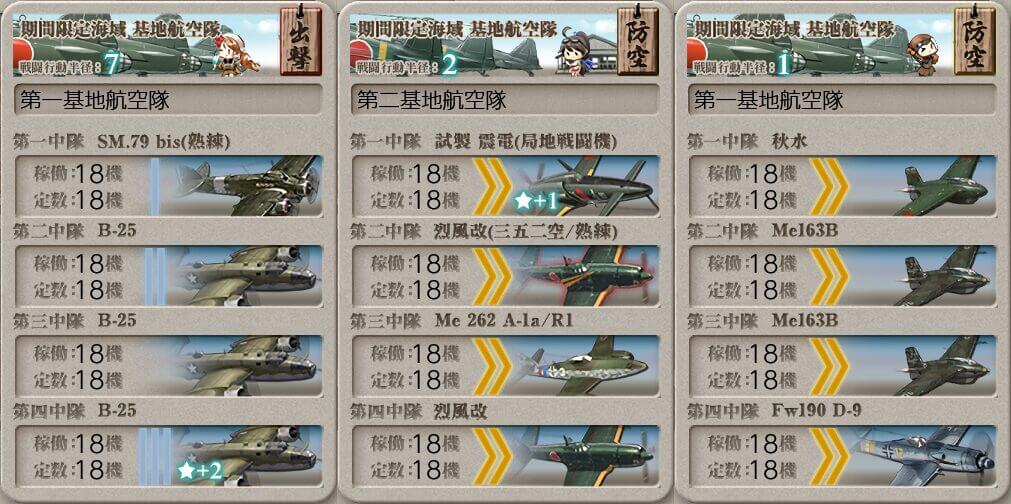 • 戦艦級 x1 , 航空母艦 x1 , 重巡級 x1 , 軽巡洋艦 x1 , 駆逐艦 x3
