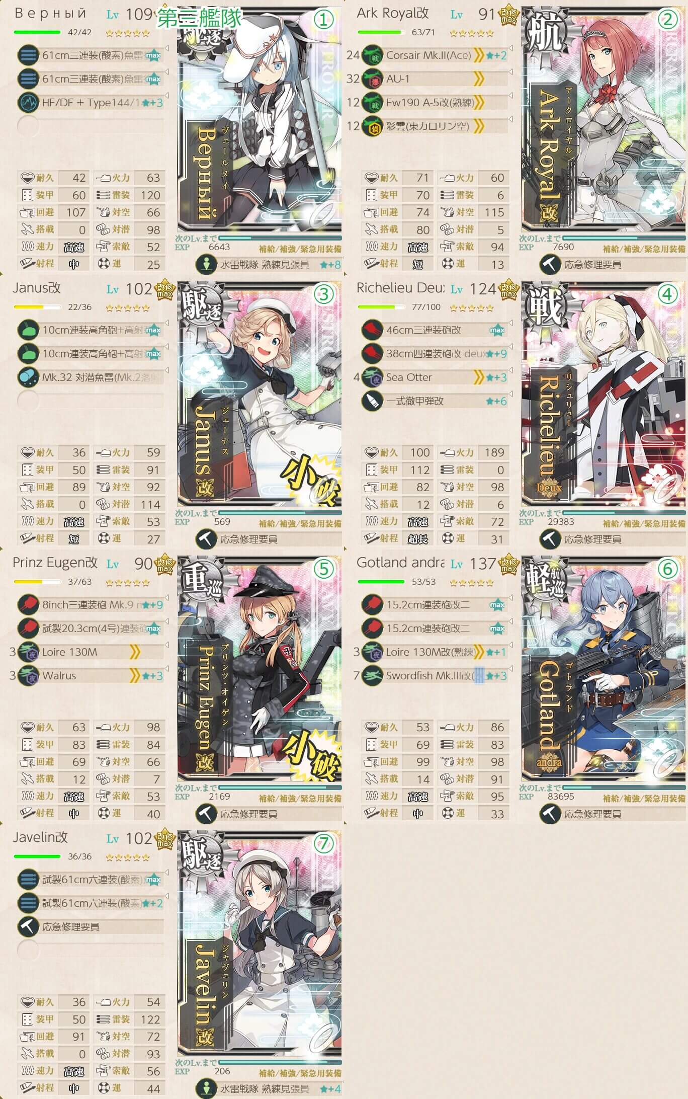 • アークロイヤル、プリンツオイゲン、ヴェールヌイ、ジャベリン、ジェーナス