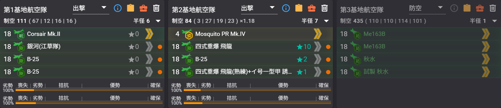 | 基地航空隊 | ・出撃可能 x2 ・防空専用 x1 |