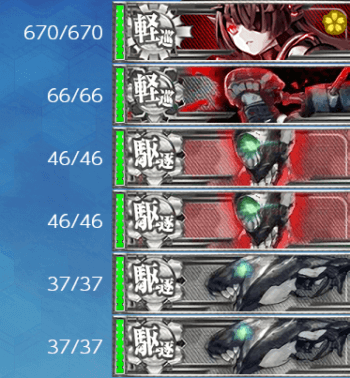 - 軽巡洋艦 x1 , 駆逐艦 x5