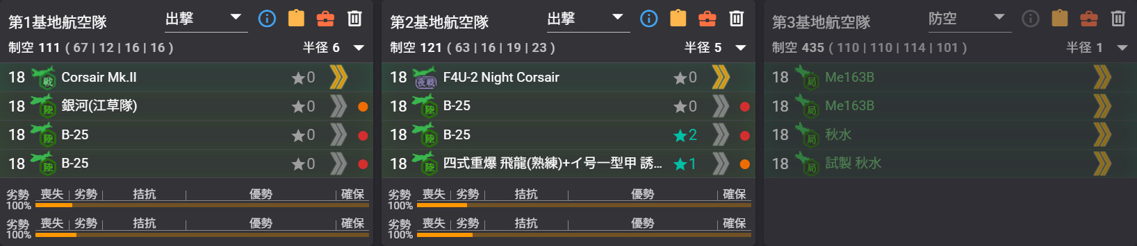 | 基地航空隊 | ・出撃可能 x2 ・防空専用 x1 |