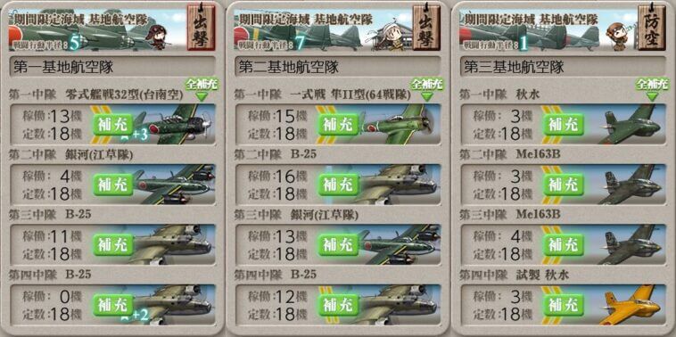 制空値目安 ・艦戦4つ+爆戦3つ+水戦3つ