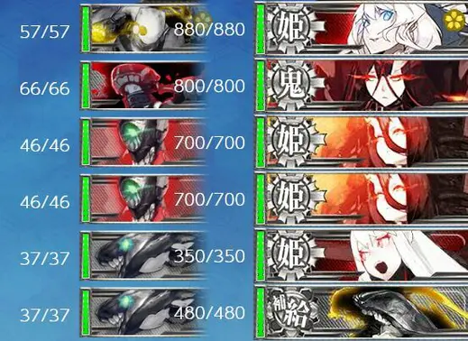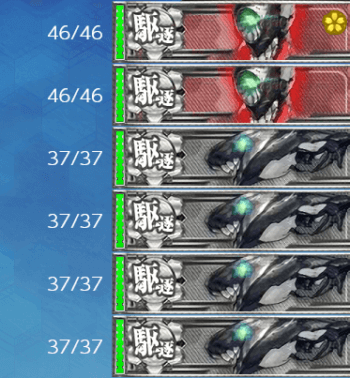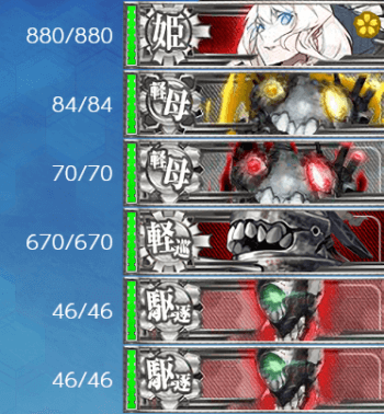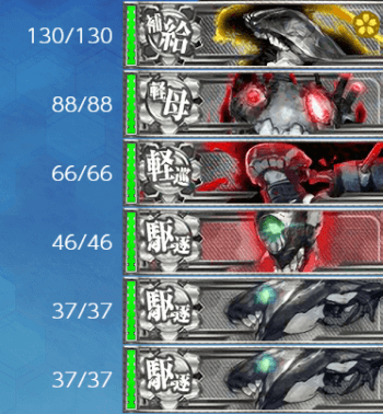 - 戦艦級 x1 , 航空母艦 x2 , 重巡級 x2 , 軽巡洋艦 x1 , 駆逐艦 x1