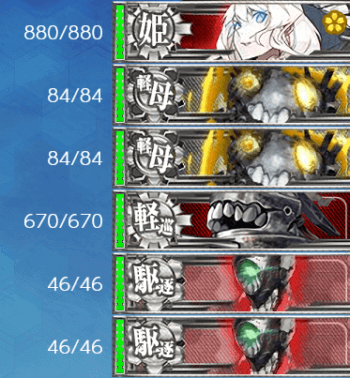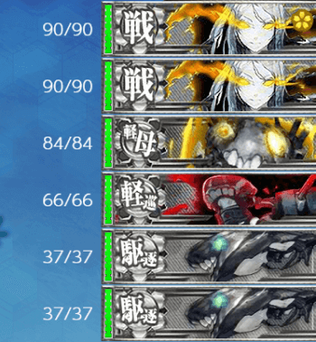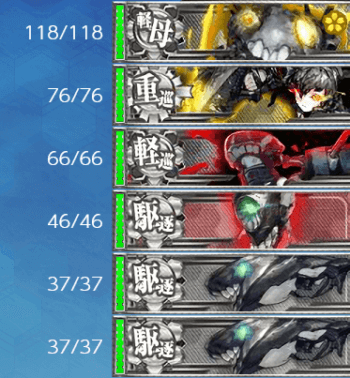 - 戦艦級 x2 , 航空母艦 x2 , 重巡級 x1 , 軽巡洋艦 x1 , 駆逐艦 x1