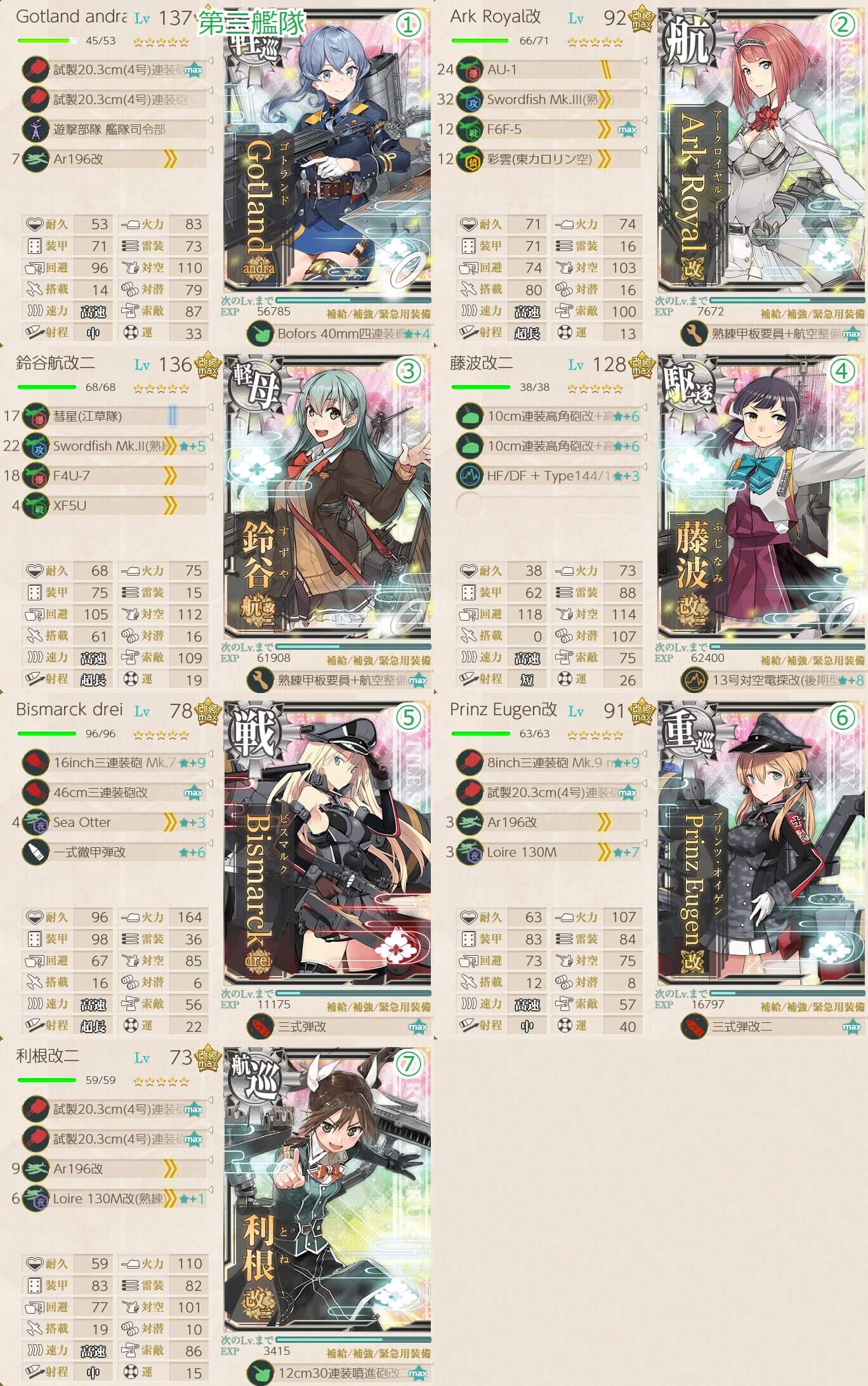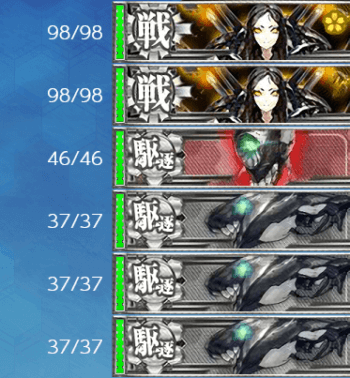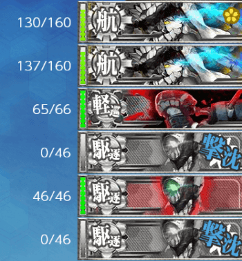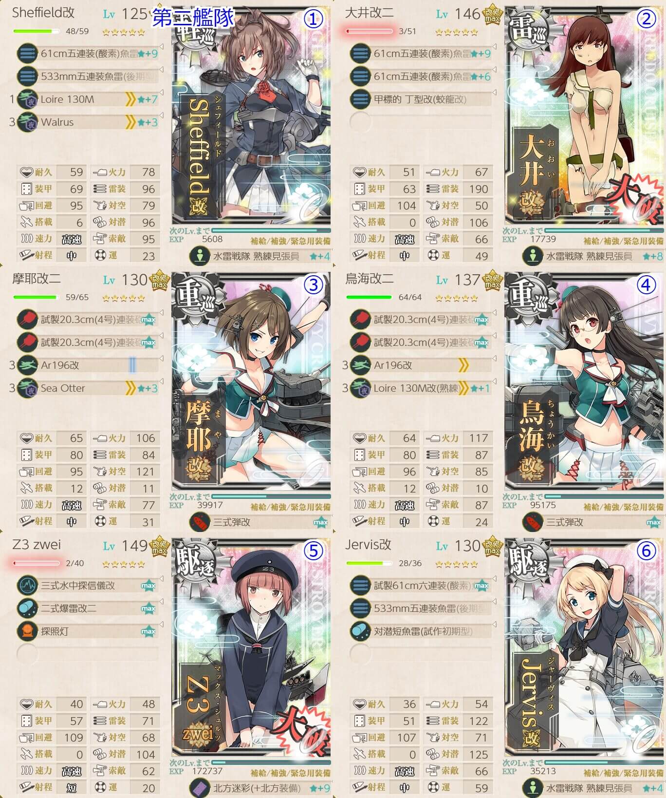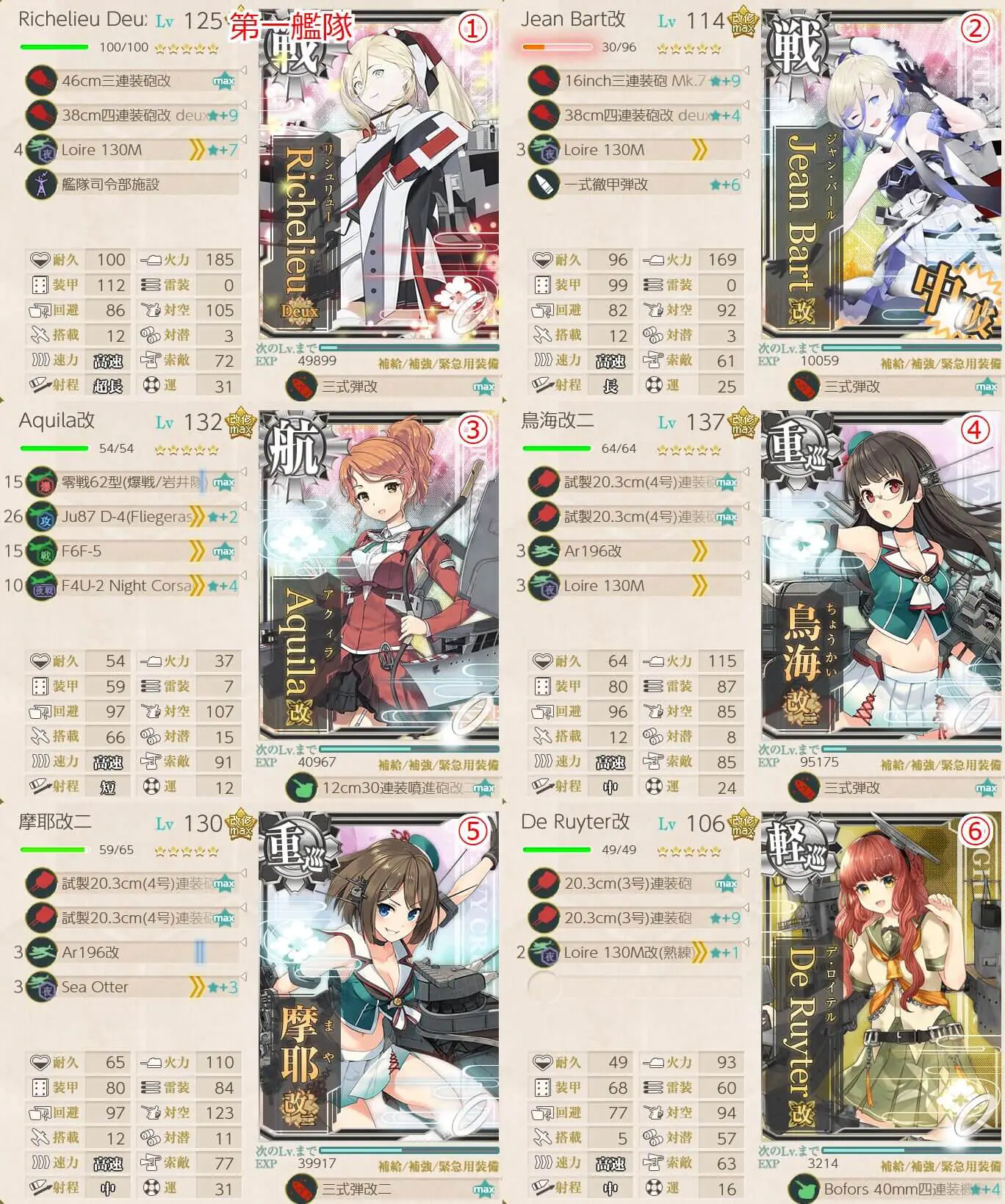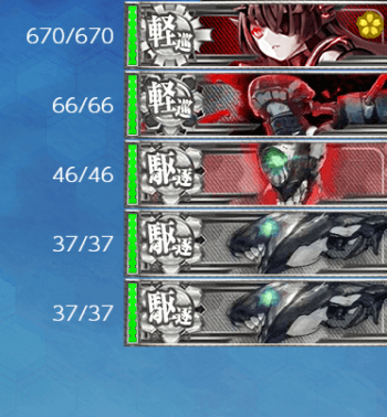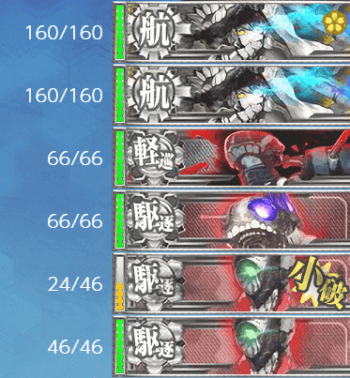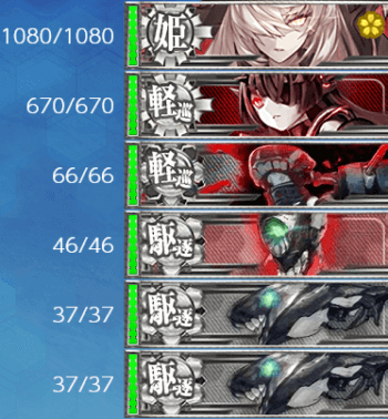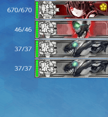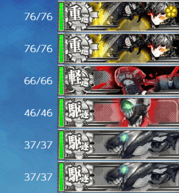 - 重巡級 x2 , 軽巡洋艦 x1 , 重雷装巡洋艦 x1 , 駆逐艦 x2