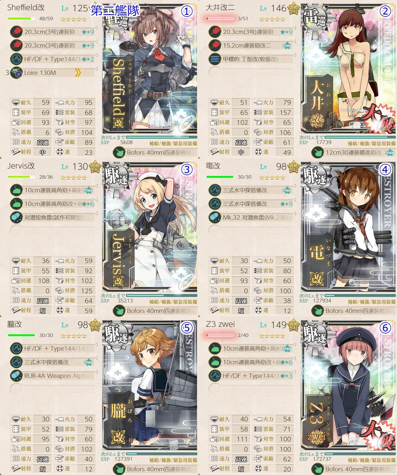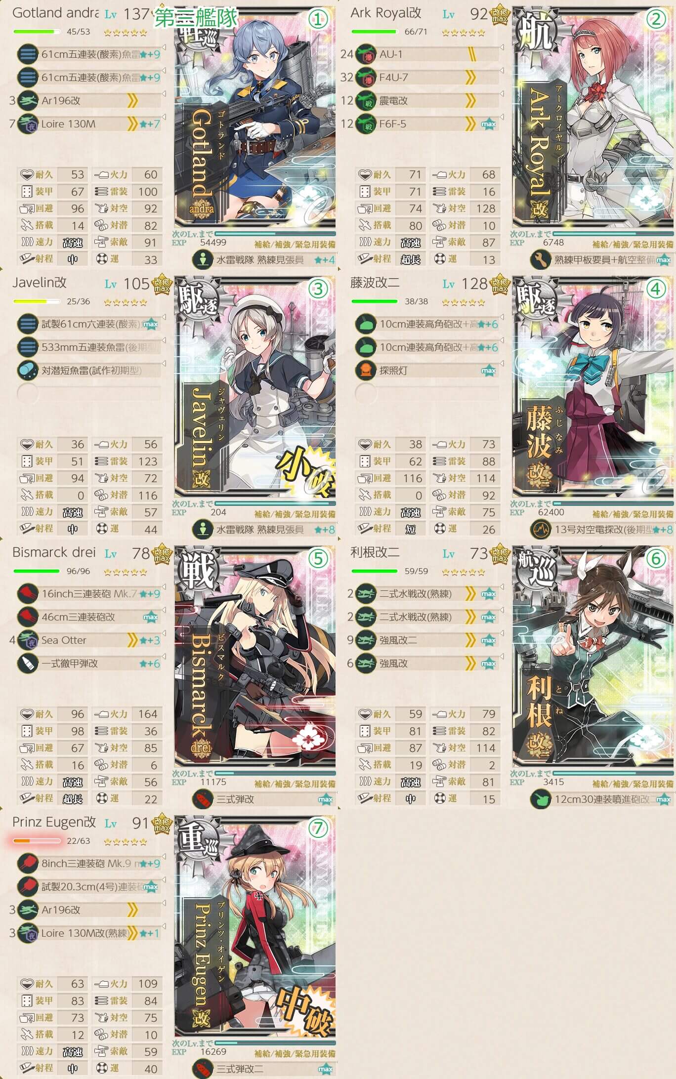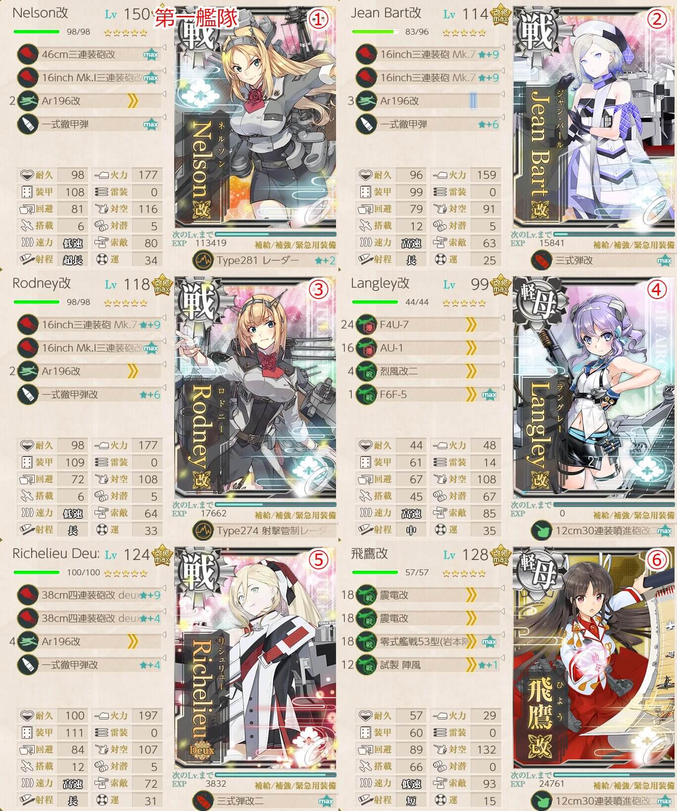 - 重巡級 x2 , 軽巡洋艦 x1 , 重雷装巡洋艦 x1 , 駆逐艦 x2