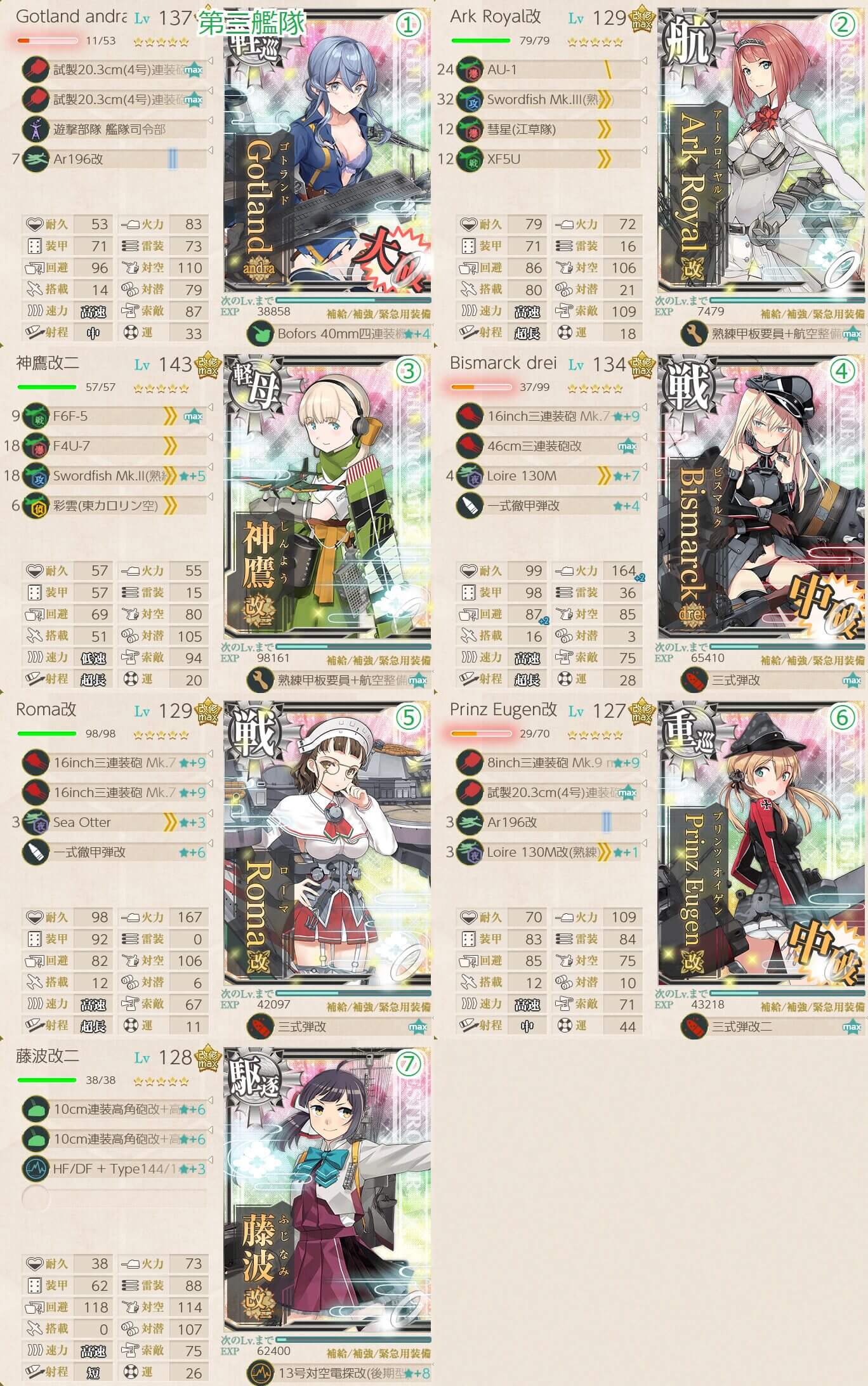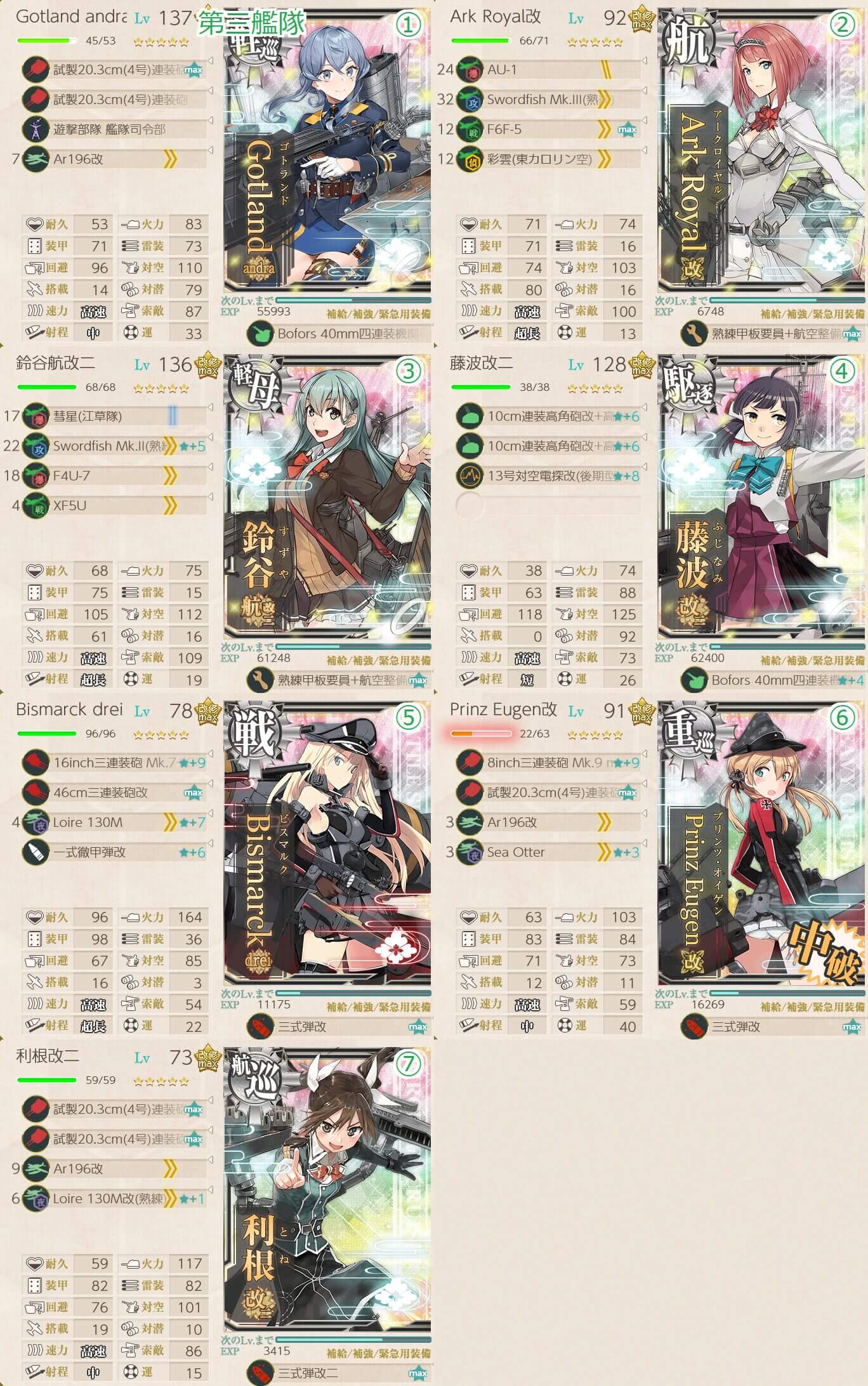 ↓ - ギミック③ 〈ナルヴィク先遣隊+ナルヴィク防衛主隊+ナルヴィク駐留艦隊〉〈イギリス本国艦隊〉