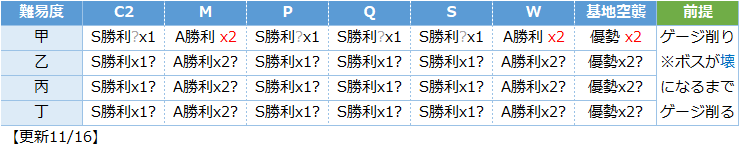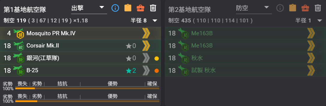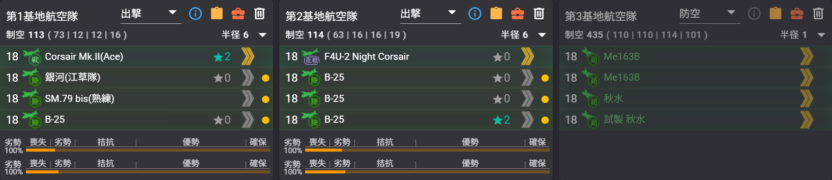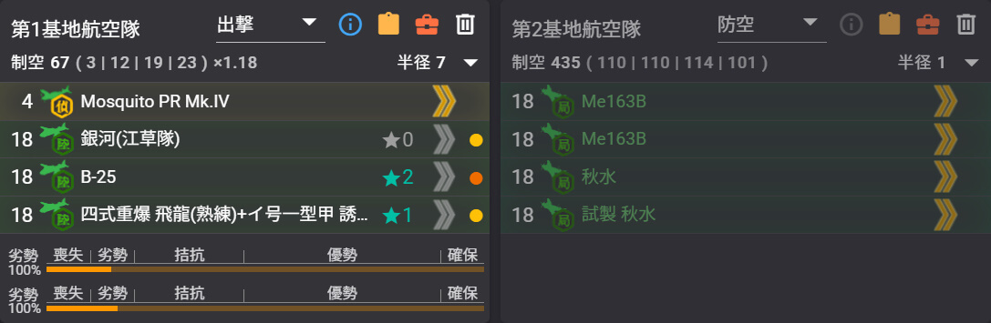 | 制空値目安 | ・90程度 | Sマスの劣勢ライン |