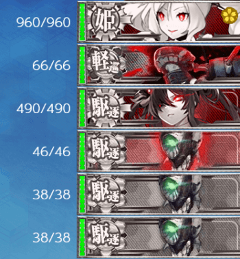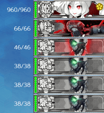 - 戦艦級 x1 , 軽空母 x2 , 軽巡洋艦 x1 , 駆逐艦 x2