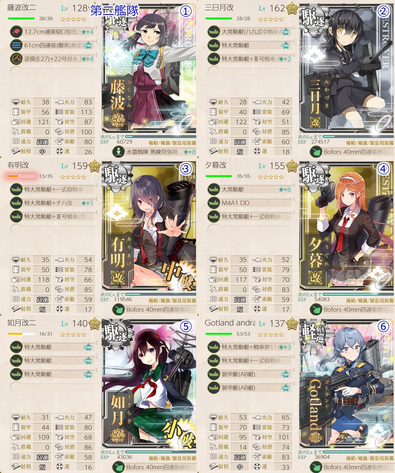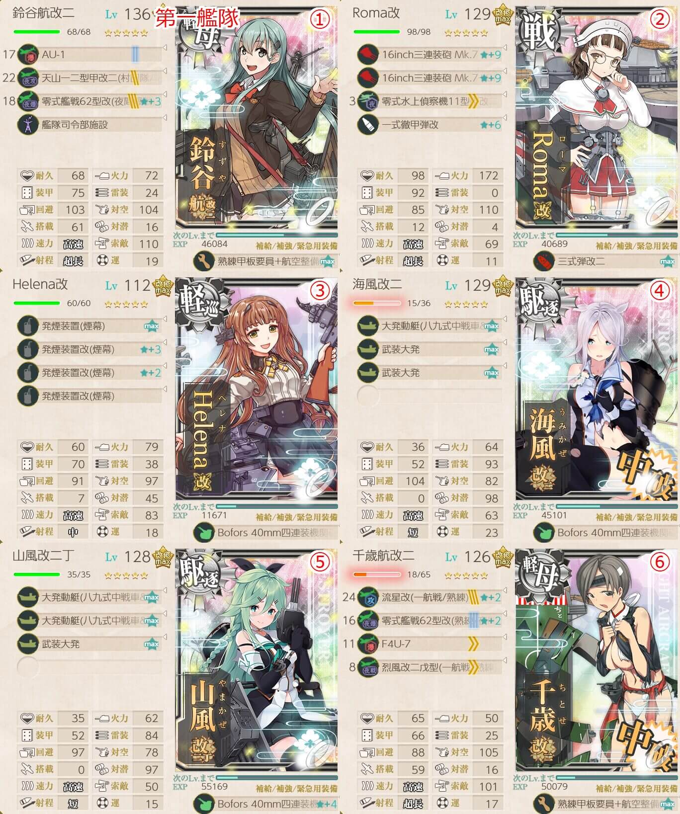 ボス編成の写真と第二艦隊の編成の写真がちがっていますよ。すみません、攻略をされているのになんかミスを指摘してしまい。