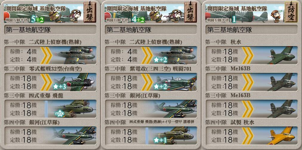 | 基地航空隊 | ・出撃可能 x2 ・防空専用 x1 |
