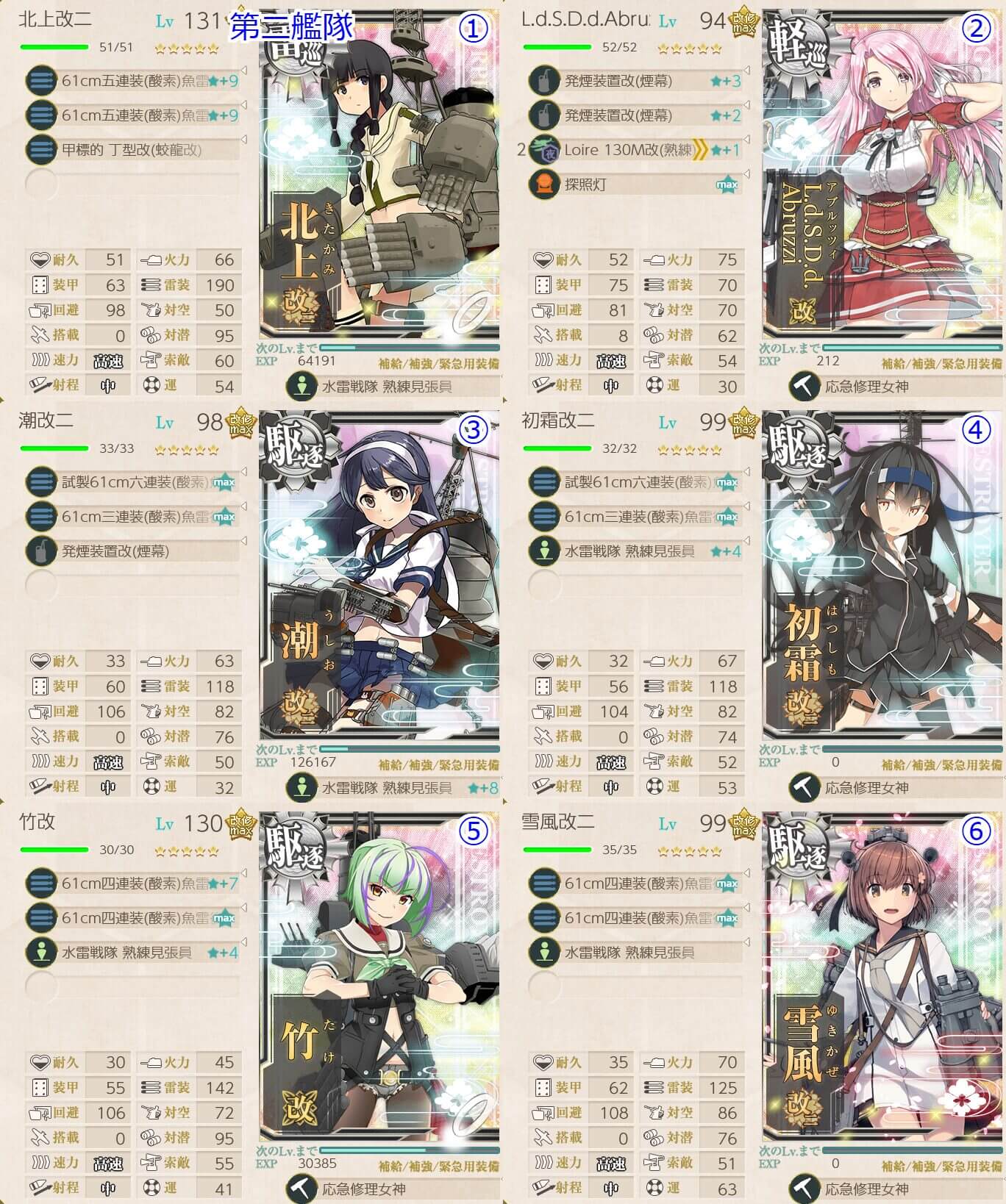 - 軽巡洋艦 x1 , 重雷装巡洋艦 x1 , 駆逐艦 x4