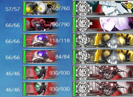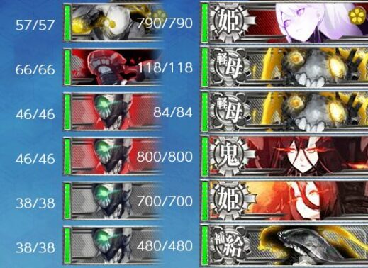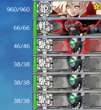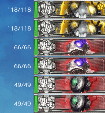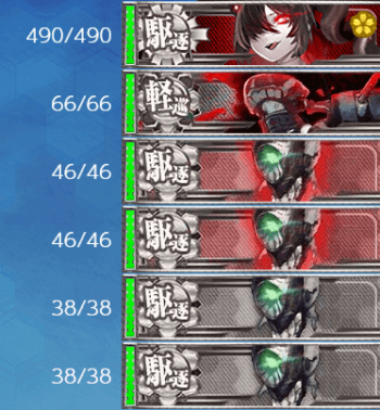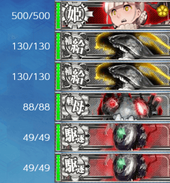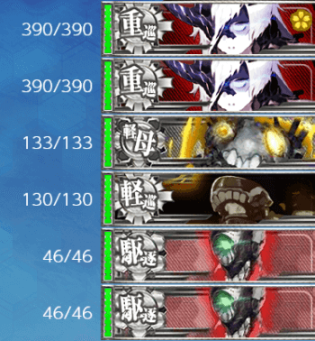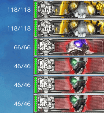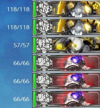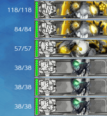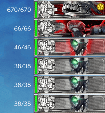 - 戦艦級 x1 , 軽空母 x2 , 軽巡洋艦 x1 , 駆逐艦 x2