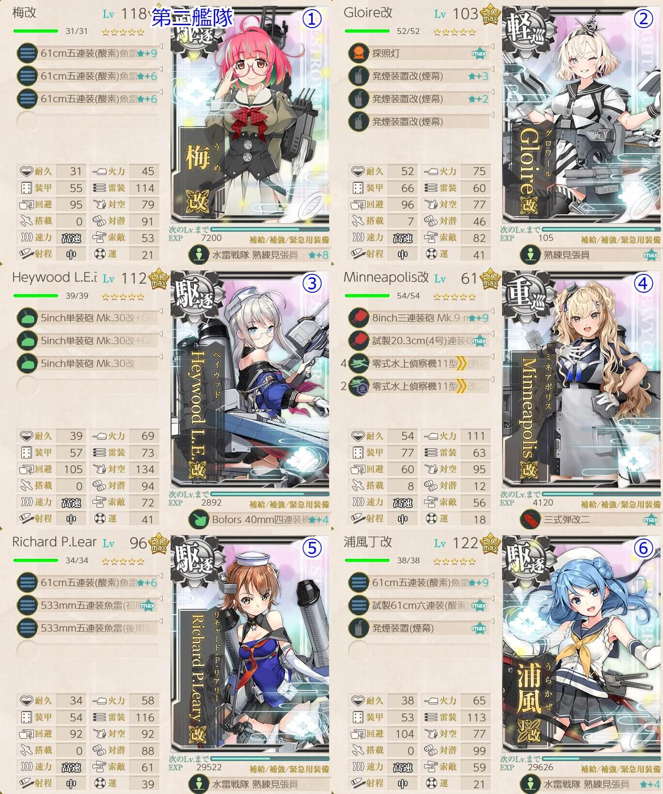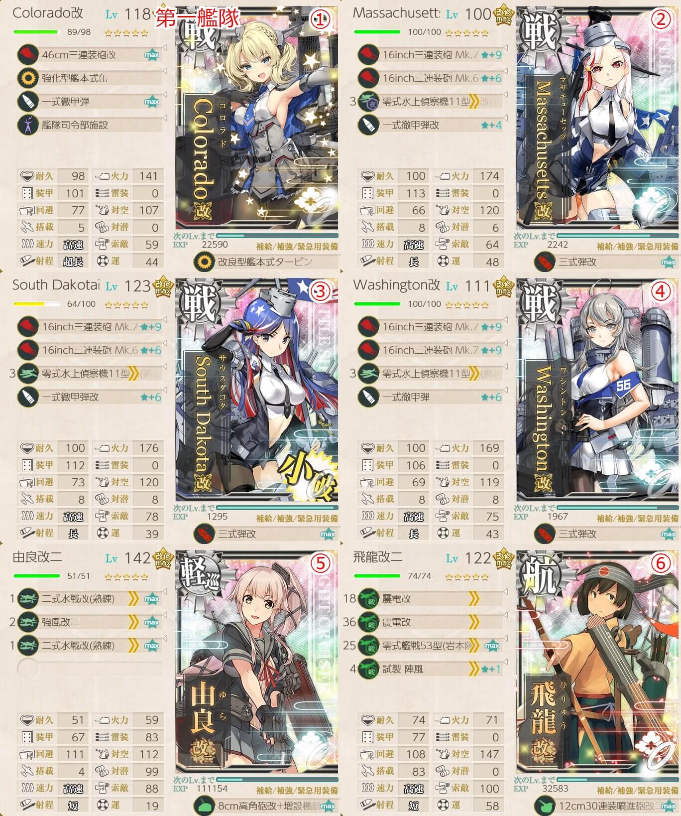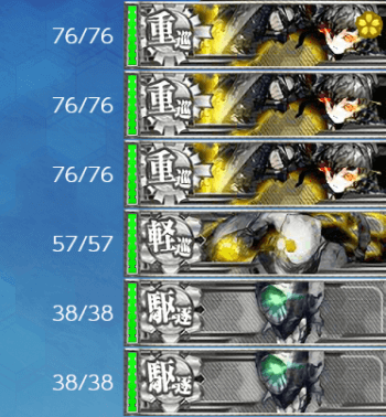 - 戦艦級 x1 , 重巡級 x2 , 軽巡洋艦 x1 , 駆逐艦 x2