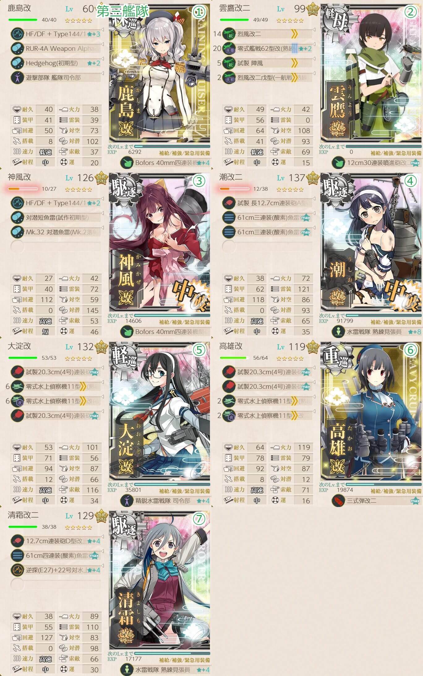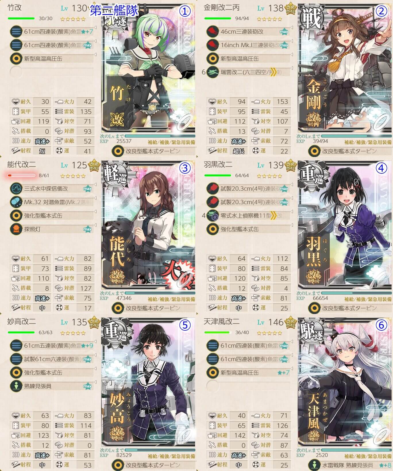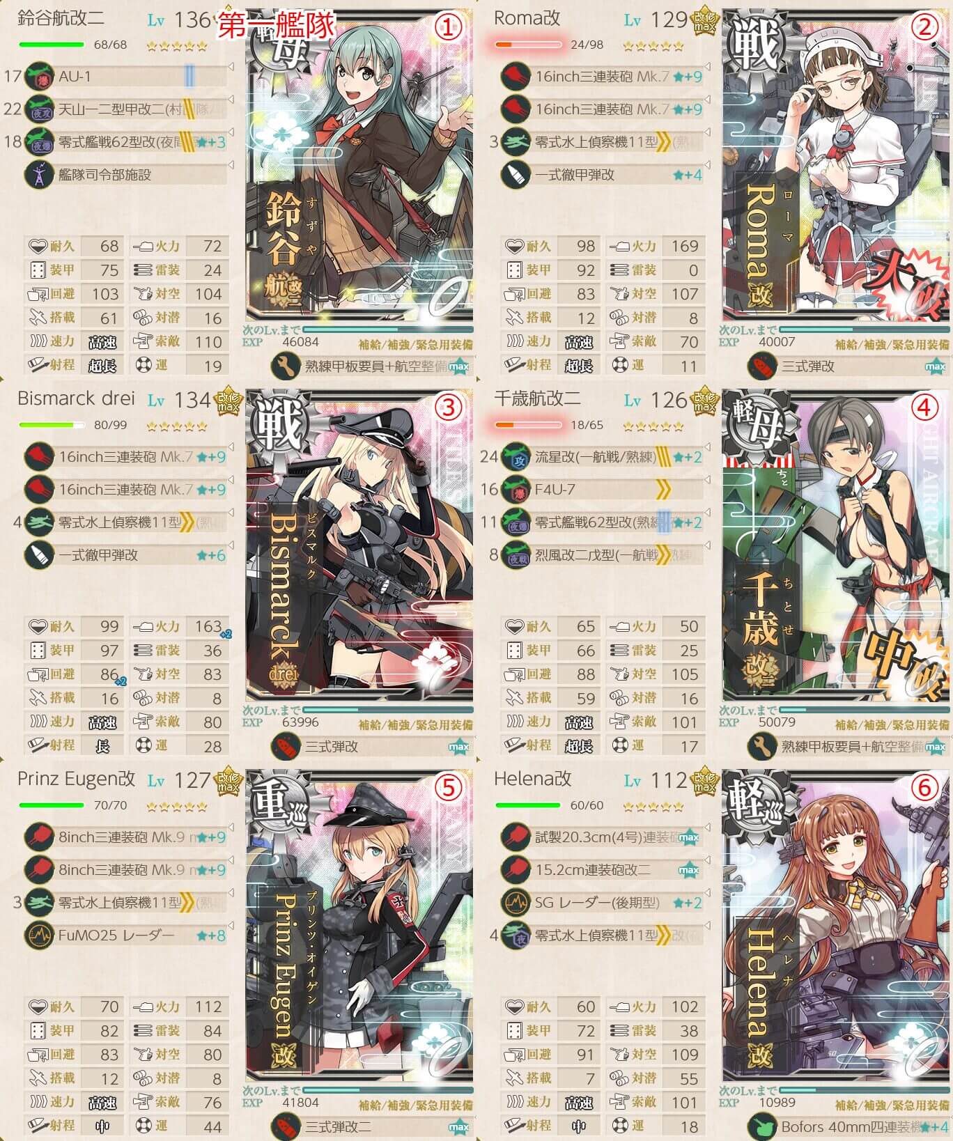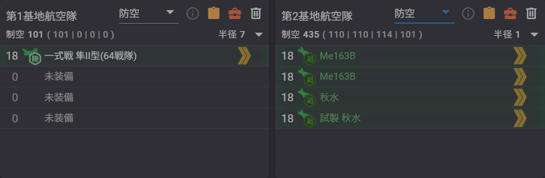 | 必要制空値 | ・185程度※第一 ・160程度※第二 |