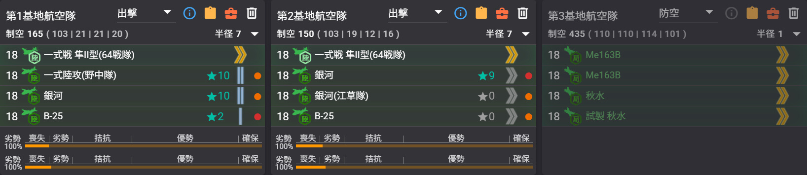 | 必要制空値 | ・163以上 | Aマスの拮抗ライン |