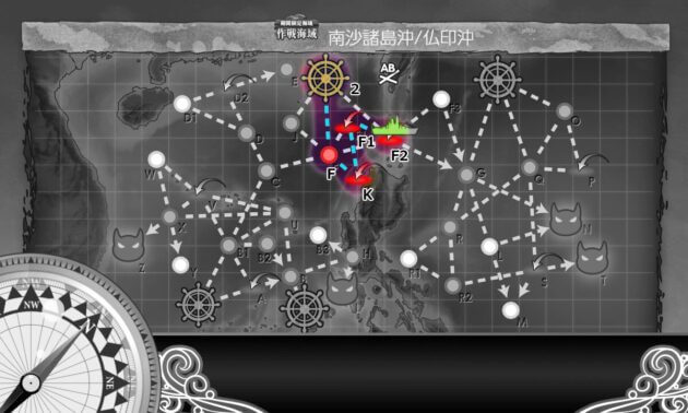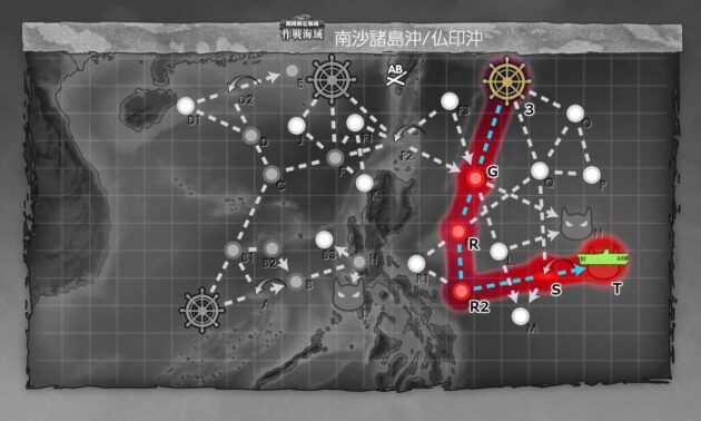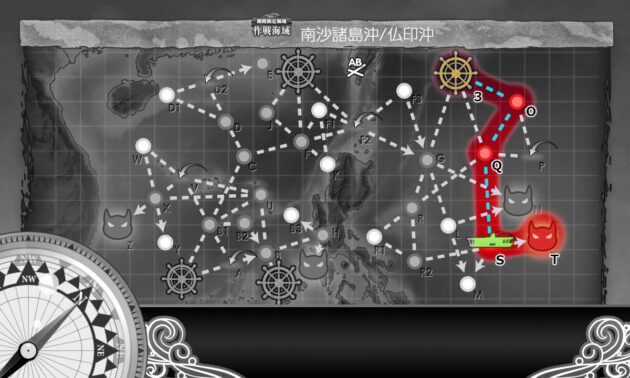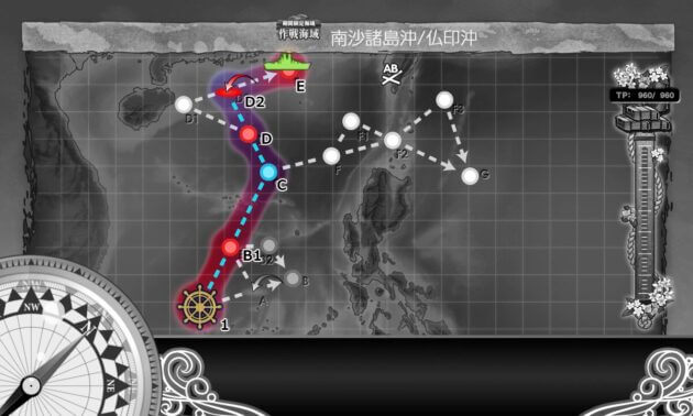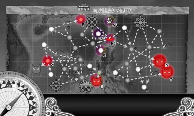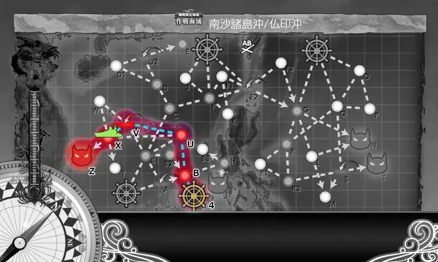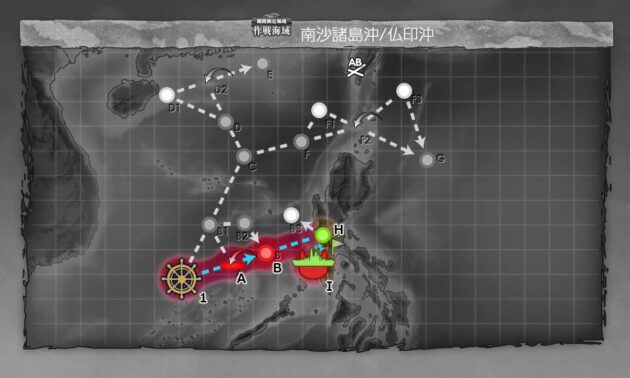 潜水艦が出現するB1マスへ逸れてしまうため注意が必要です。 - また、Xマスに到達する前に軽巡洋艦がいなくなると、