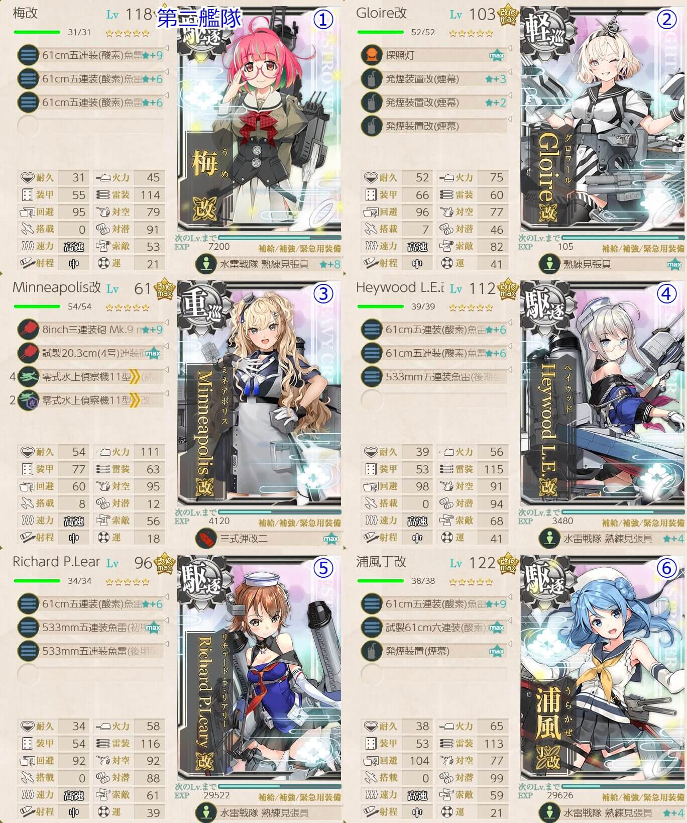 - 軽空母 x1 , 重巡級 x1 , 軽巡洋艦 x1 , 練習巡洋艦 x1 , 駆逐艦 x3